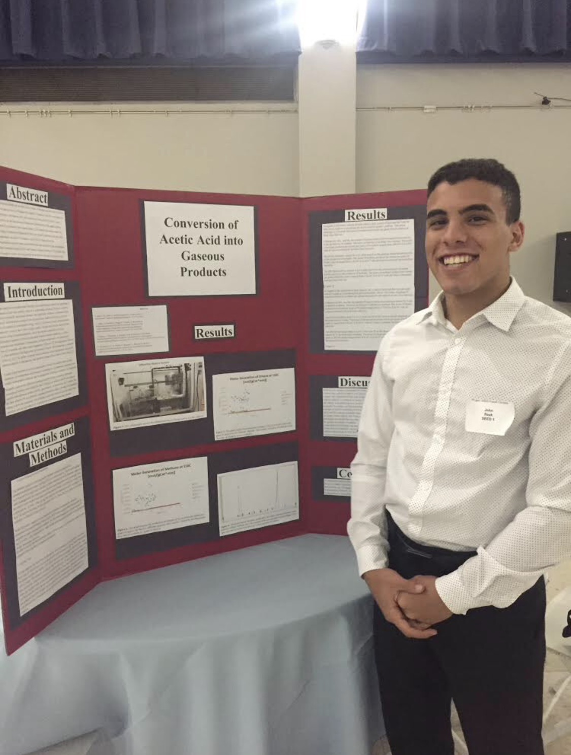 Another High Tech senior, Anna Rezk, also from Bayonne, continued her work under the supervision of Dr. Woo Lee at Stevens Institute, producing “Identifying CD138+ Multiple Myeloma Cells Adhered to Endosteal Osteoblasts.” Rezk’s brother, John, also a senior and under the mentorship of Dr. Simon Podkolzin, performed research at Stevens as well on “Conversion of Acetic Acid into Gaseous Products.” Both Rezk siblings earned third place awards.