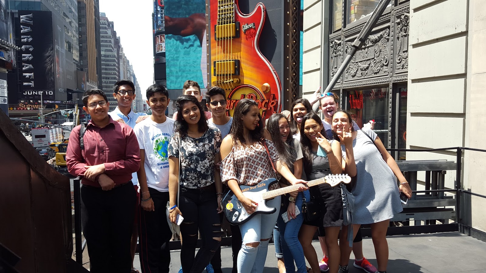 (New York, NY—June 17, 2016) Veteran High Tech Language Arts instructor Robert Dillon and Social Studies teacher Ronald Kliesh escorted sophomores to the famous Hard Rock Café to complete their final project on rock and roll’s connection to critical moments in history and American culture, announced Dr. Joseph Giammarella, Principal of High Tech.