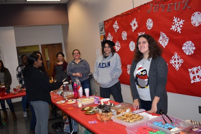 The event, spearheaded by French Club president Mously Lo, a resident of Jersey City, and vice president Erica DeLacerda of North Bergen, focused on the main attraction, baked goods. Students from the French Club displayed such desserts as chocolate éclairs, croissants, flan, palmiers, chocolate mousse, and oreillettes. Also, culinary majors baked a Buche de Noёl, better known as a Yule log. The variety of desserts reflected the diverse sweets consumed by Francophones around this time of the year.