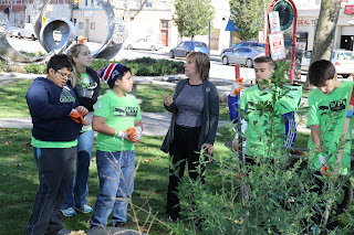 Instructors Samantha Dorio, William Goold, Shelly Witham and Cathy Yuhas chaperoned twenty-six students, ranging in grade from freshman to senior, on the structured learning experience at Washington Park. Students and teachers, along with members of the Washington Park Association community and local law enforcement agents from the Hudson County Sheriff’s Department, worked side by side. Together, they pulled weeds, trimmed shrubs, edged lawns and planted trees throughout the park’s Learning Garden. Much of the work, which also included mulch spreading and bulb planting, was to prepare the garden for winter.